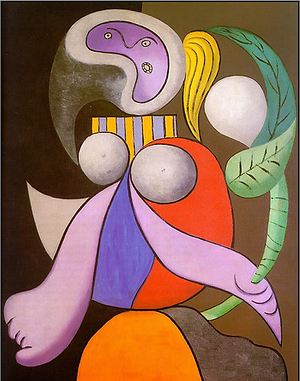 Ein quadratischer Ausschnitt dieses Gemäldes ( links) zeigt - quatroskopisch gespiegelt - ein eigenartiges Muster (rechts, anklicken) - und erst beim Nähertreten wird der Ausschnitt des Originalbild erkennbar.